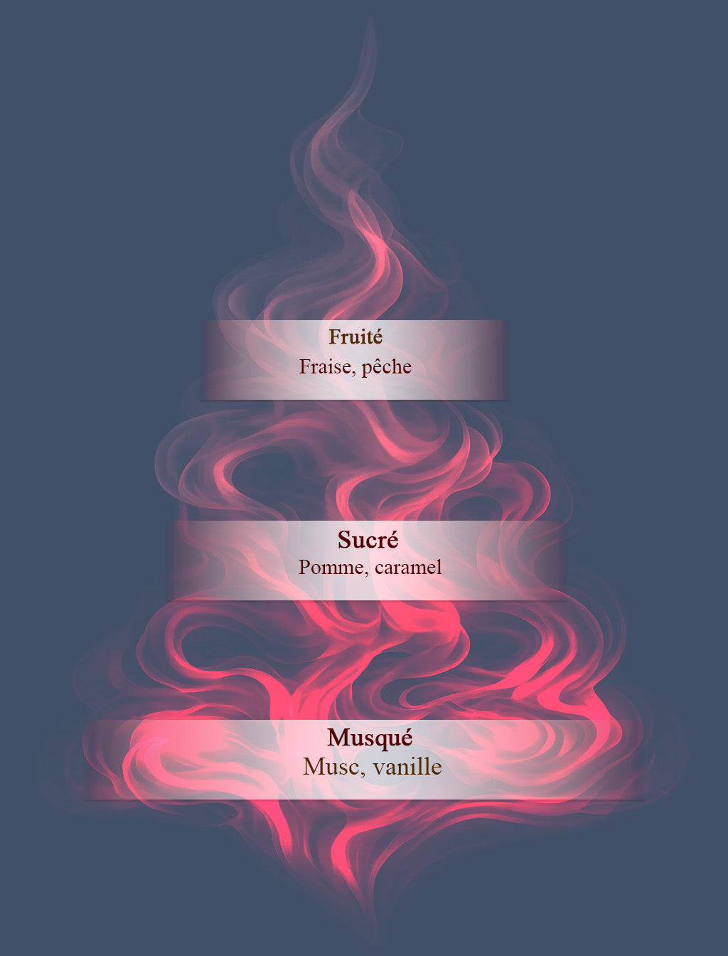 Une pomme fondante nappée de caramel, cœur même du parfum, à la fois sucré et légèrement brûlé. Une note chaude et fondante qui rappelle le sucre chauffé des fêtes foraines.